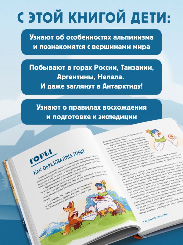 Приглашаем вас в увлекательное путешествие вместе с книгой «Вершины мира для детей», которая расскажет юным исследователям о семи вершинах мира и о таком интересном виде спорта и активного отдыха, как альпинизм!