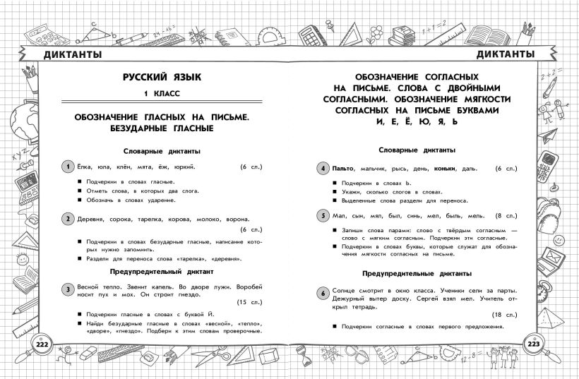 • диктанты по русскому языку и математике.