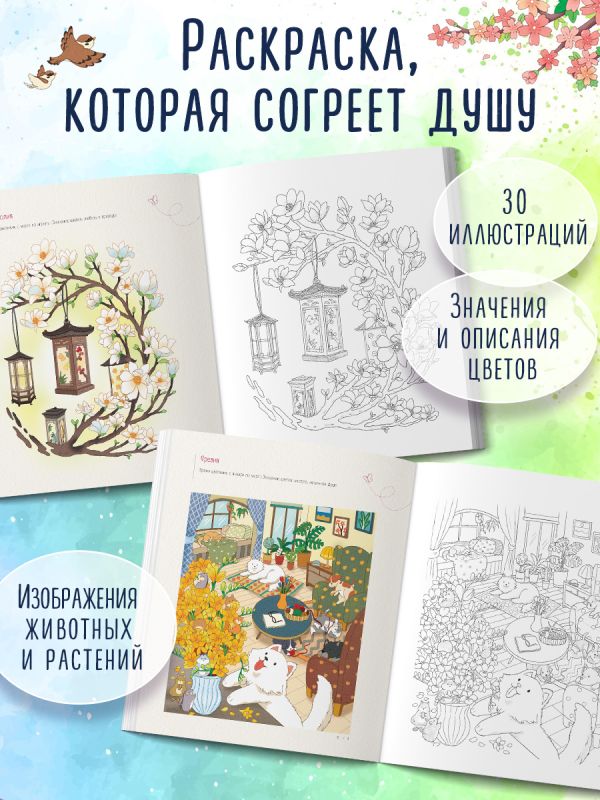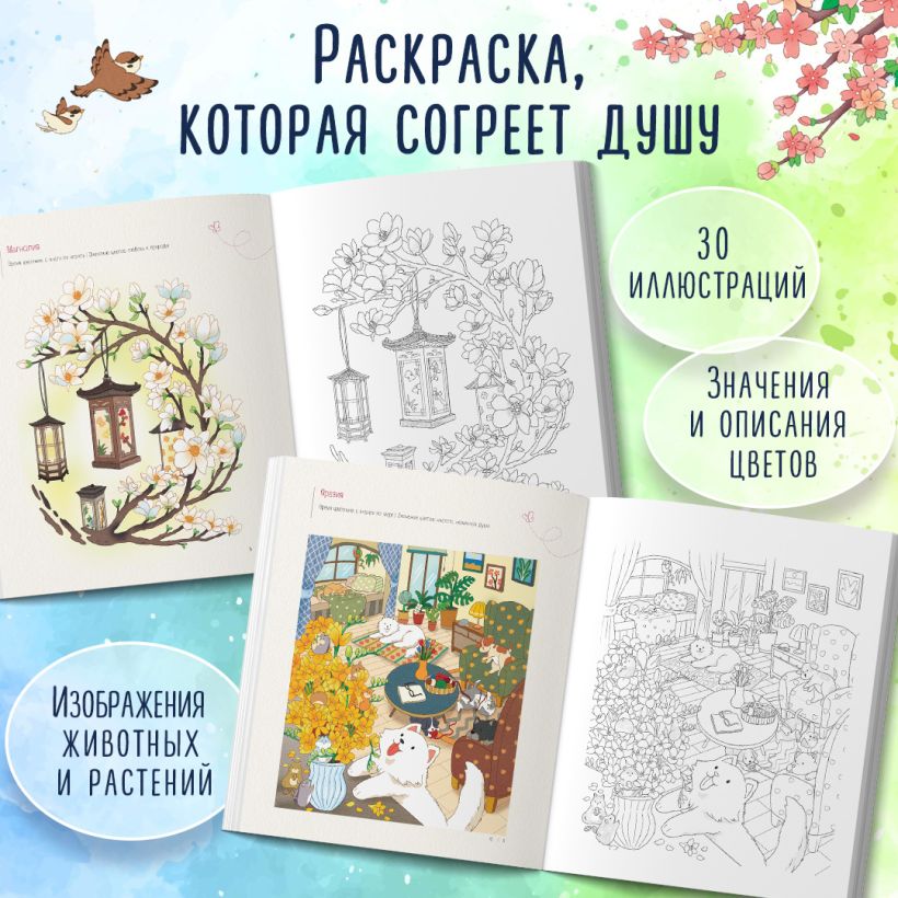 Откройте двери в мир спокойствия и теплых эмоций с нашей раскраской-антистресс. Насладитесь временем наедине с собой и медитацией через прекрасные изображения, полные весенней красоты. Вас ждут более 25 милых и уютных иллюстраций, которые можно раскрашивать как по прилагающемуся образцу, так и подобрав свои любимые цвета. Позвольте раскрыться вашим эмоциям и настроению, искусно прикоснувшись к каждой линии и оттенку. Забудьте о суете и погрузитесь в мир вдохновения и умиротворения с нашей раскраской, которая обещает подарить вам теплые чувства и радость.