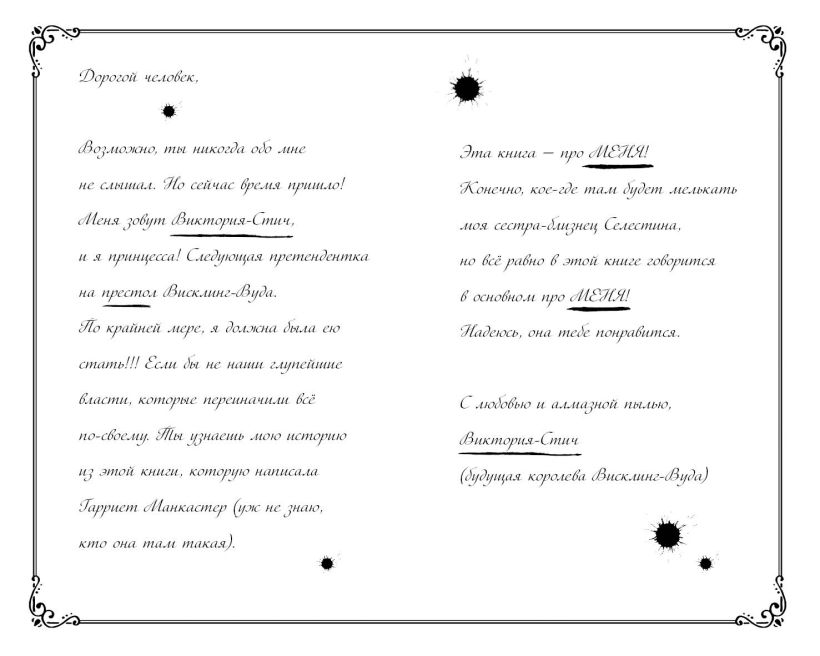 Виктория-Стич не такая, как все — и она этим гордится! Ведь она и её сестра Селестина родились из королевского кристалла, из которого появляются правители Висклинг-Вуда. Подумаешь, что на этом кристалле было тёмное пятно! Это ничего не значит! Но глупый советник решил, что из-за этого девочки не могут претендовать на трон. И если Селестина готова согласиться с этим, то Виктория-Стич не намерена мириться с несправедливостью! Она обязательно добьётся своего и станет королевой! Даже если для этого ей придётся обратиться к тёмной магии…