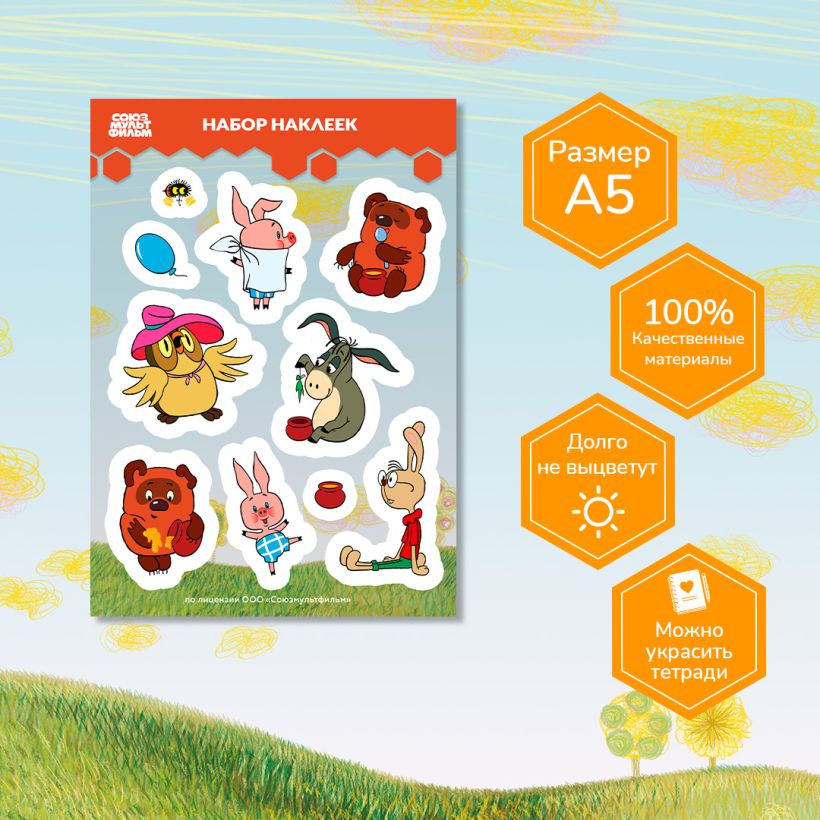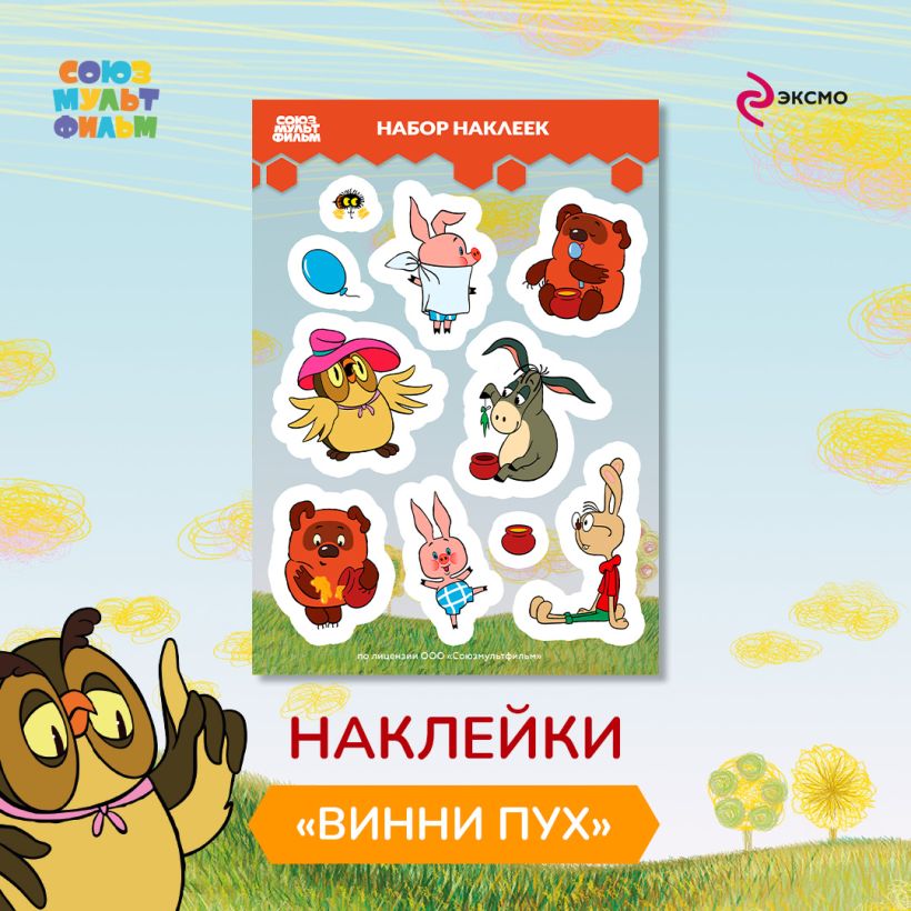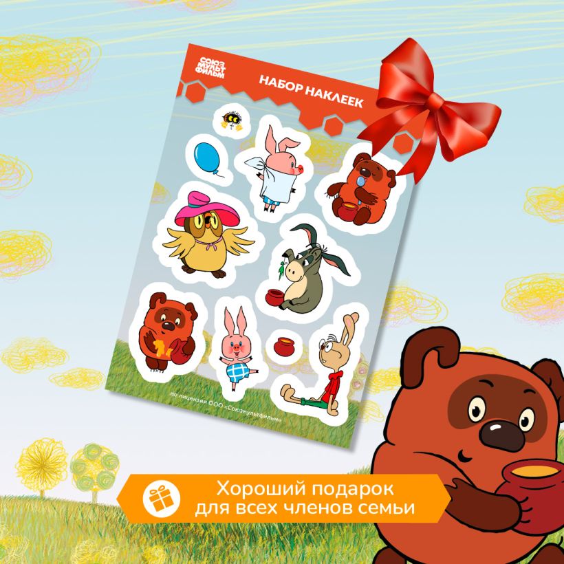 Хорошо живет на свете Винни Пух, потому что с ним сделали яркий набор наклеек. Компанию ему составят звезды золотой коллекции Союзмультфильма: верный друг Пятачок, ослик Иа, Сова и Кролик.
