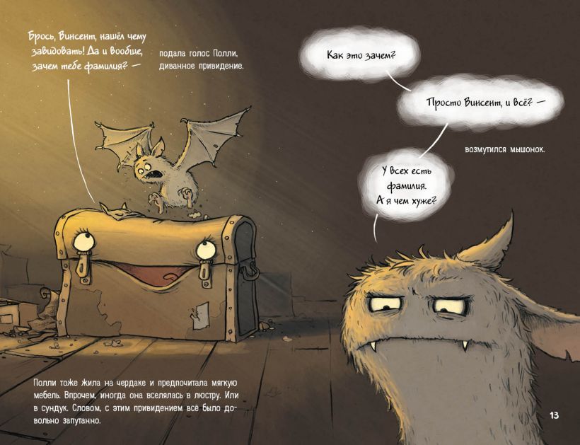 Винсент не самый обычный летучий мышонок. Ведь наполовину он ПРИЗРАК! Только почему-то до сих пор не знает, есть ли у него какие-то ВОЛШЕБНЫЕ СПОСОБНОСТИ? Чтобы выяснить это, летучий мышонок и его подруга морская свинка отправляются на прогулку в одно совсем не опасное место…