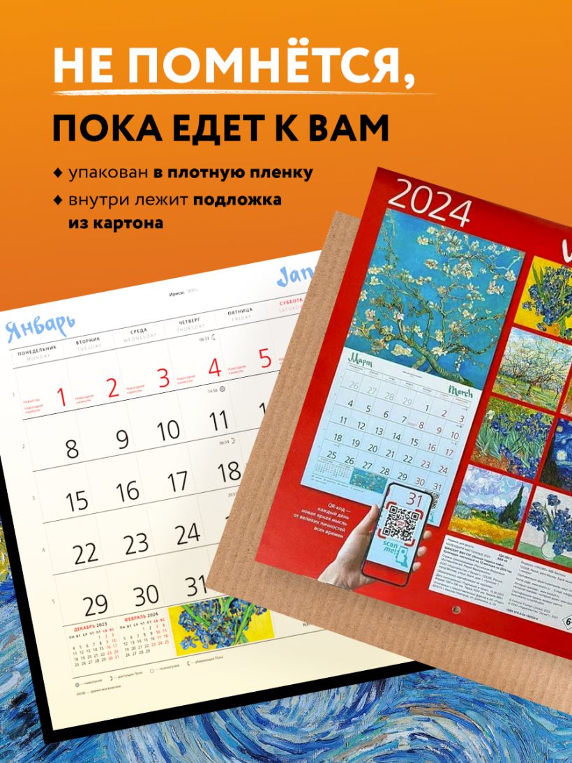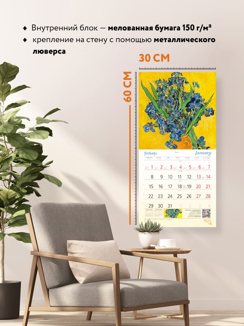 Практичный и прекрасно иллюстрированный календарь призван украсить интерьер вашего дома и наполнить его светом знаменитых шедевров мирового искусства. Сетка календаря составлена с учетом потребностей делового человека: в ней отмечены государственные праздники и оставлено место для заметок на каждый день. А безупречные с точки зрения качества рисунки будут радовать вас весь год!