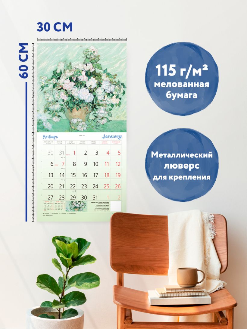 Практичный и эстетичный, этот календарь каждый месяц будет радовать вас. Прекрасные картины органично дополнят любой интерьер и помогут планировать время. В этом календаре представлены шедевры кисти Винсента Ван Гога.