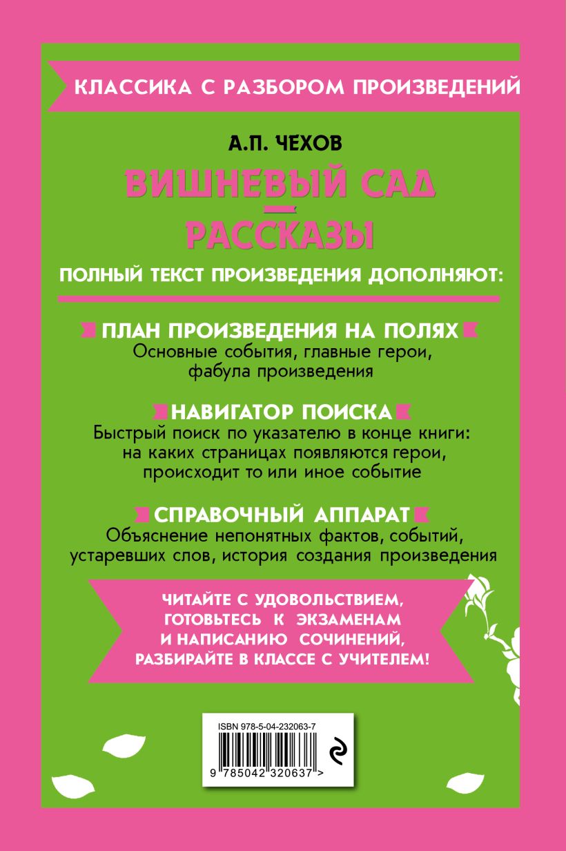 Помимо полного текста пьесы А. П. Чехова "Вишневый сад" и рассказов, обязательных к прочтению в школе, в издании представлены ценные дополнительные материалы: