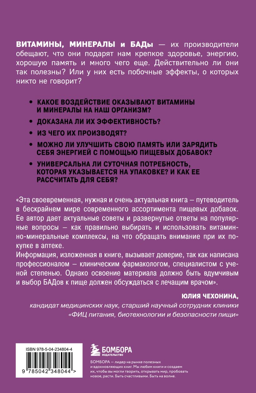 Информация, изложенная в книге, вызывает доверие, так как написана профессионалом — клиническим фармакологом, специалистом с ученой степенью. Однако освоение материала должно быть вдумчивым и выбор БАД к пище должен обсуждаться с лечащим врачом».