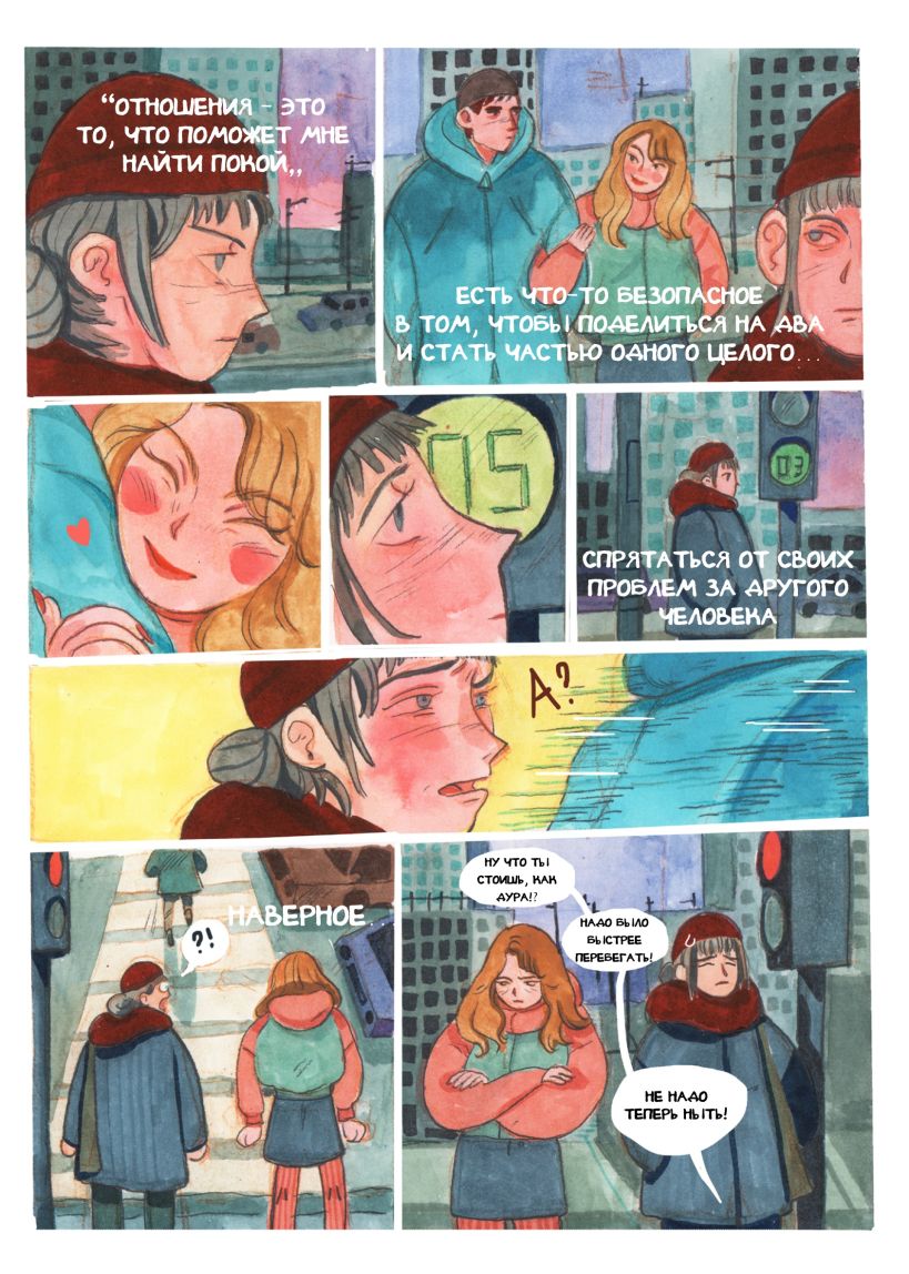 Боишься публичных выступлений, высоты, ответственности? А еще насекомых, грозы или монстров под кроватью? Каждый сталкивался с такими страхами и часто прятался, вместо того чтобы посмотреть им в глаза. Как побороть свои страхи и пройти мягкую терапию? Тебе поможет… кот! Он любит устраивать суету, гоняться за едой и ворчать на хозяйку, но при этом делится психологическими советами, словно заправский психолог. Эту необычную историю создала молодая и талантливая девушка — Лапка Художника — иллюстратор и будущий психолог. Она ведет веселый блог с комиксами и короткими жизненными роликами, в которых ты точно узнаешь себя. Там и кот, скачущий по ночам, и комар, сводящий с ума, и мозг, застрявший на старой песне из рекламы. Котокомикс для тех, кто: - устал беспокоиться и тревожиться по пустякам; - хочет понять свои эмоции без скучных теорий; - готов прислушаться к советам кота-психолога; - обожает юмор, комиксы и жизненные зарисовки. Каждая глава обозначена определенным цветом, поэтому ты никогда не запутаешься, где именно находишься: в зеленой главе с детскими страхами или в фиолетовой — с экзистенциальными. «Эта книга как теплый разговор с собой в моменты тревоги. С юмором, легкостью и неожиданной глубиной она помогает взглянуть на страхи по-другому — мягко, бережно и с улыбкой. Кот-психолог протянет свою лапку помощи. И расскажет, как легче и спокойнее воспринимать эту жизнь». — Любовь Стяпшина, автор и иллюстратор метафорических открыток «Дом твоего сердца» «Добрые комиксы о девочке, которая боялась всего на свете. Но, ура, рядом появляется кот: пушистый, спокойный и мудрый. Он не смеётся над страхами, а объясняет, что всё не так уж страшно. Очень милая, тёплая и поддерживающая книжка. Особенно когда тревожно и хочется, чтобы кто-то просто был рядом». — Алла Гончарова, автор проекта Curavamnedura