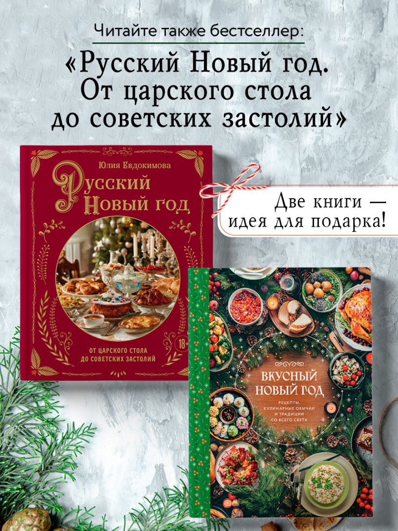 Новый год в давние времена праздновали и в марте, и в сентябре. Что-то не складывалось! Тогда Петром I было принято самое мудрое решение: середина зимы, ночь, уставшие от холода люди — и шумный, веселый, обильный праздник, дарящий силы, радость, надежду. Праздновали его с размахом и цари, и дворянство с купечеством, и мы — советские граждане большой страны. Юлия Евдокимова уже в который раз (17 книг!) поражает новыми предложениями путешествий. Теперь это путешествие в глубину нашей истории, в традиции самого любимого праздника, за накрытый вкуснейшими блюдами стол. Так давайте попробуем утку по-царски и буженину, маринованную в квасе; заливное из соленых грибов и курник; советские классические бутерброды со шпротами и салат «Мимоза» с его историей, и еще много увлекательных блюд. Книга яркая, со множеством иллюстраций, вкусных рецептов и рассказов. С Новым годом! И пусть он будет счастливым для всех!