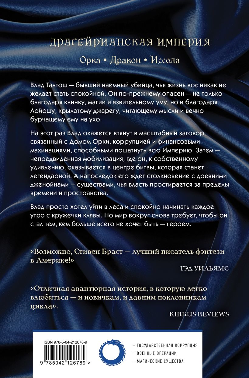 На этот раз у Влада Талтоша настоящие проблемы. Он всего лишь хотел помочь юноше, однажды спасшему его жизнь, но оказался втянут в игру с могущественным Домом Орки, чтобы раскрыть масштабный финансовый заговор. А потом случайно записался в армию (что для наемного убийцы звучит как провал карьеры). И, как вишенка на торте, отправился спасать друзей, которые, кажется, попали в лапы существ, способных изменять реальность. То есть в лапы дженойнов. Да-да, тех самых мифических создателей мира.