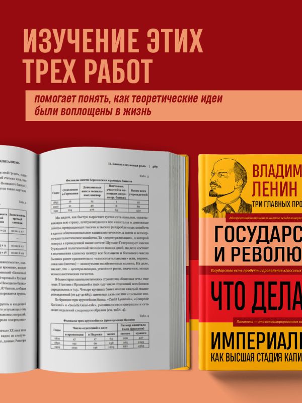Труды В. Ленина не утратили своей актуальности до наших дней, хотя вышли более 100 лет назад в годы революционных преобразований в стране. В сборнике представлены важнейшие работы Владимира Ленина, посвященные обществу и его развитию. «Государство и революция» — лучшее полное и систематическое изложение марксистского учения о государстве. В работе рассматривается сущность государства, разъясняются предпосылки отмирания классового общества, говорится об историческом понимании демократии. В тексте революционного марксизма «Что делать? Наболевшие вопросы нашего движения» определяется роль российской социал-демократии в буржуазно-демократической революции, рассказывается о создании революционной пролетарской партии нового типа, как руководящей и организующей силе рабочего движения. «Империализм как высшая стадия капитализма» — ключевая экономическая работа В. Ленина посвящена переходу капитализма в конце XIX — начале XX в. от стадии первоначального накопления капитала к стадии монополистического капитализма, или империализма. Сборник будет интересен историкам, политологам, философам, а также широкому кругу заинтересованных читателей.
