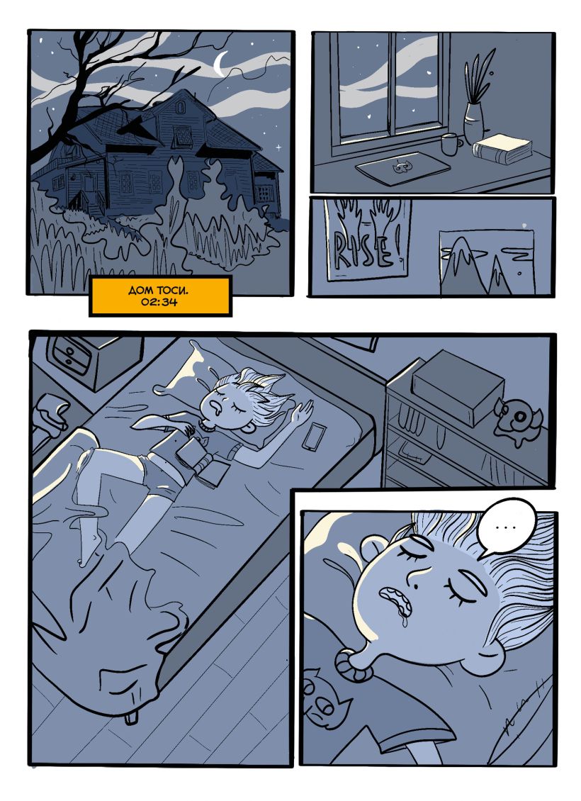 Дебютный комикс популярной блогерки Светы Дейдример рассказывает о жизни девушки Тоси. Ей 20 лет, она помогает своей соседке выгуливать мини-пига Мистера Томпсона, а ещё подрабатывает в местной библиотеке. В общем, днём она ведёт жизнь, не богатую на яркие события и безумные поступки, но по ночам… По ночам Тося видит сны о приключениях в фантастических мирах. Неужели этот яркий мир, полный впечатлений и веселья, так и останется уделом сна?.. Или Тосе удастся воплотить свои мечты в реальность?