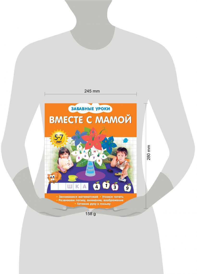Это развивающее пособие поможет мальчикам и девочкам развить мелкую моторику в игровой форме, а также параллельно получить базовые знания — выучить буквы и цифры. Ведь во время письма процесс усвоения проходит гораздо быстрее. Обучение письму должно быть поэтапным: необходимо сформировать графические навыки и научить ребенка правильно и аккуратно работать карандашом. Тогда процесс письма в школе будет простым и интересным. Занимаясь, ребенок будет обводить линии по пунктиру, проходить лабиринты, рисовать по клеточкам, писать буквы и цифры. Книга-развивашка, предназначенная для совместных занятий мамы и ребенка, станет надежным помощником в процессе подготовки к школе. Простые задания легко выполнять дома, на прогулке или в дороге. Обучение, проходящее в виде веселой увлекательной игры, поможет ребенку не только развить ключевые навыки, но и почувствовать уверенность в своих силах. Прописи идеально подойдут для занятий с детьми 4, 5, 6 лет, так как учитывают их особенности восприятия и интересы. Рекомендуем также приобрести другие книги серии: «Читаем вместе с мамой», «Считаем вместе с мамой», «Развиваем логику вместе с мамой», «Развиваем внимание и память вместе с мамой».