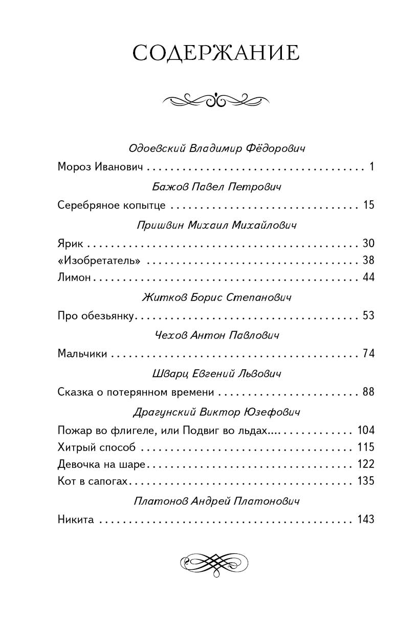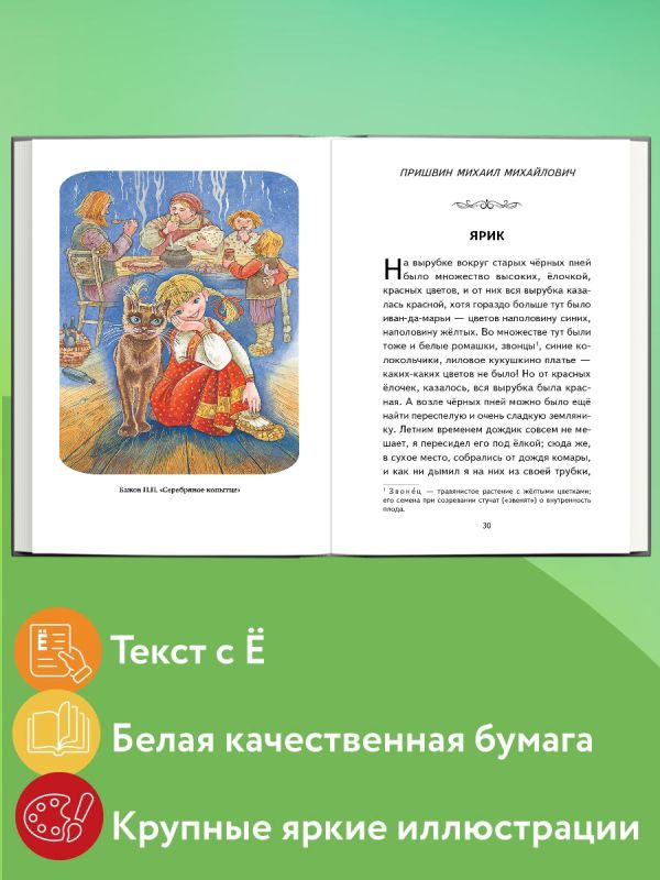 В состав сборника вошли основные произведения известных русских писателей, творчество которых изучают в третьем классе, в том числе «Серебряное копытце» П.П. Бажова, рассказы Пришвина о животных, «Сказка о потерянном времени» Е.Л. Шварца и др.