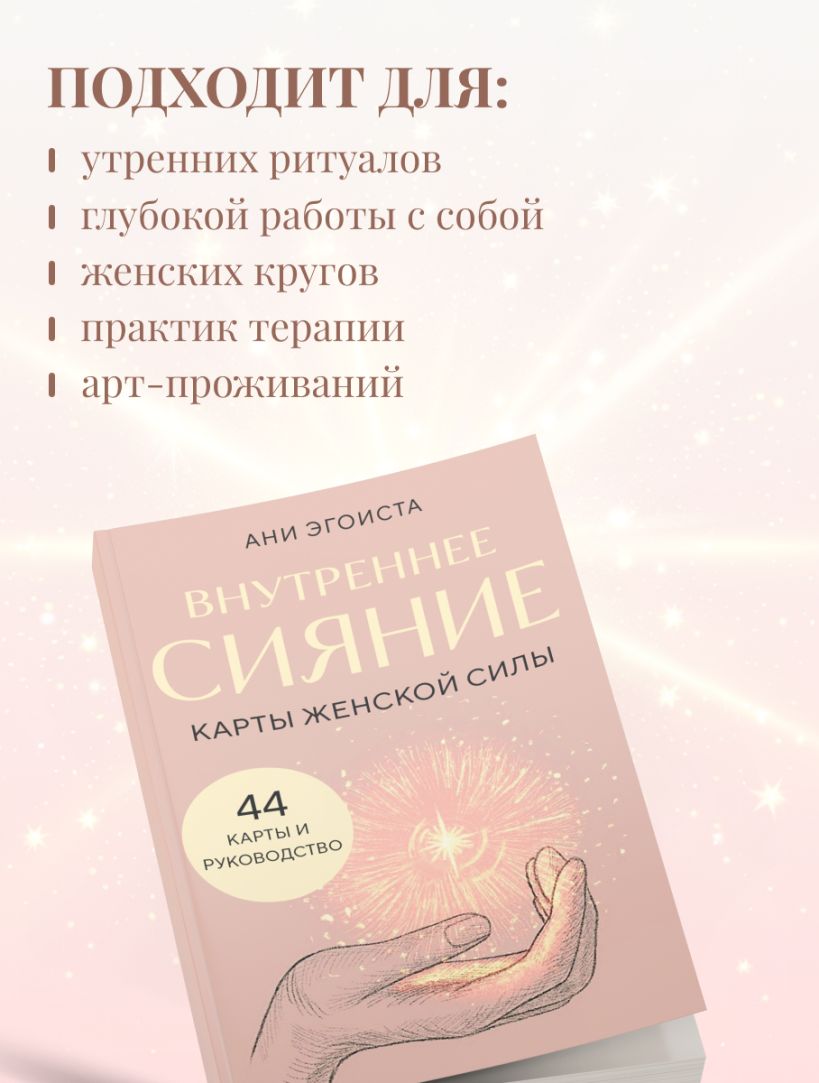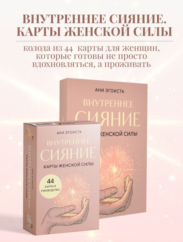 Внутреннее Сияние. Карты женской силы — это колода из 44 карт для женщин, которые готовы не просто вдохновляться, а проживать. Это инструмент возвращения к себе. К телу. К голосу. К истоку.
