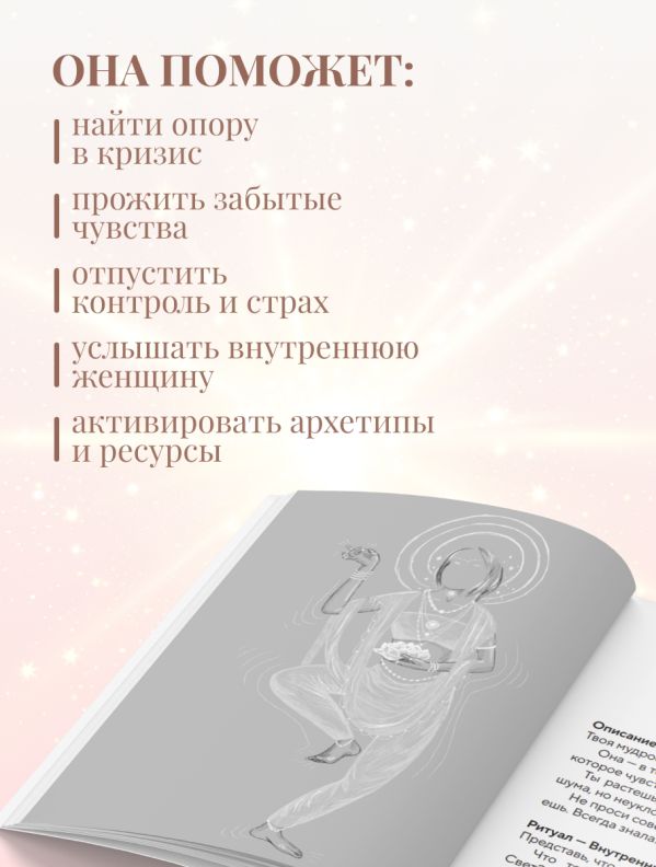 Она поможет: найти опору в кризис, услышать внутреннюю женщину, прожить забытые чувства, активировать архетипы и ресурсы, отпустить контроль и страх.