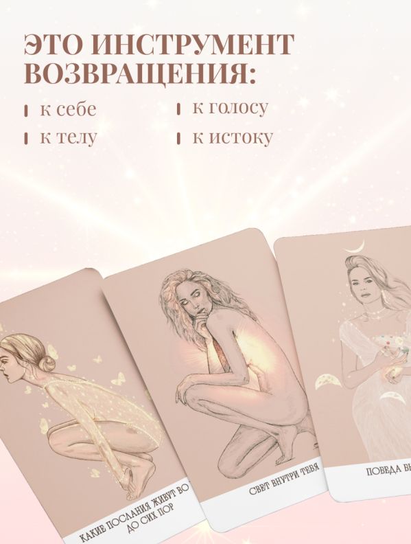 Это не карты предсказаний. Это карты возвращения. Подходит для утренних ритуалов, глубокой работы с собой, женских кругов, практик терапии и арт- проживаний.