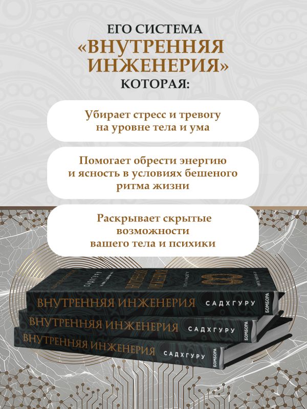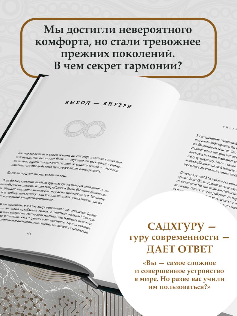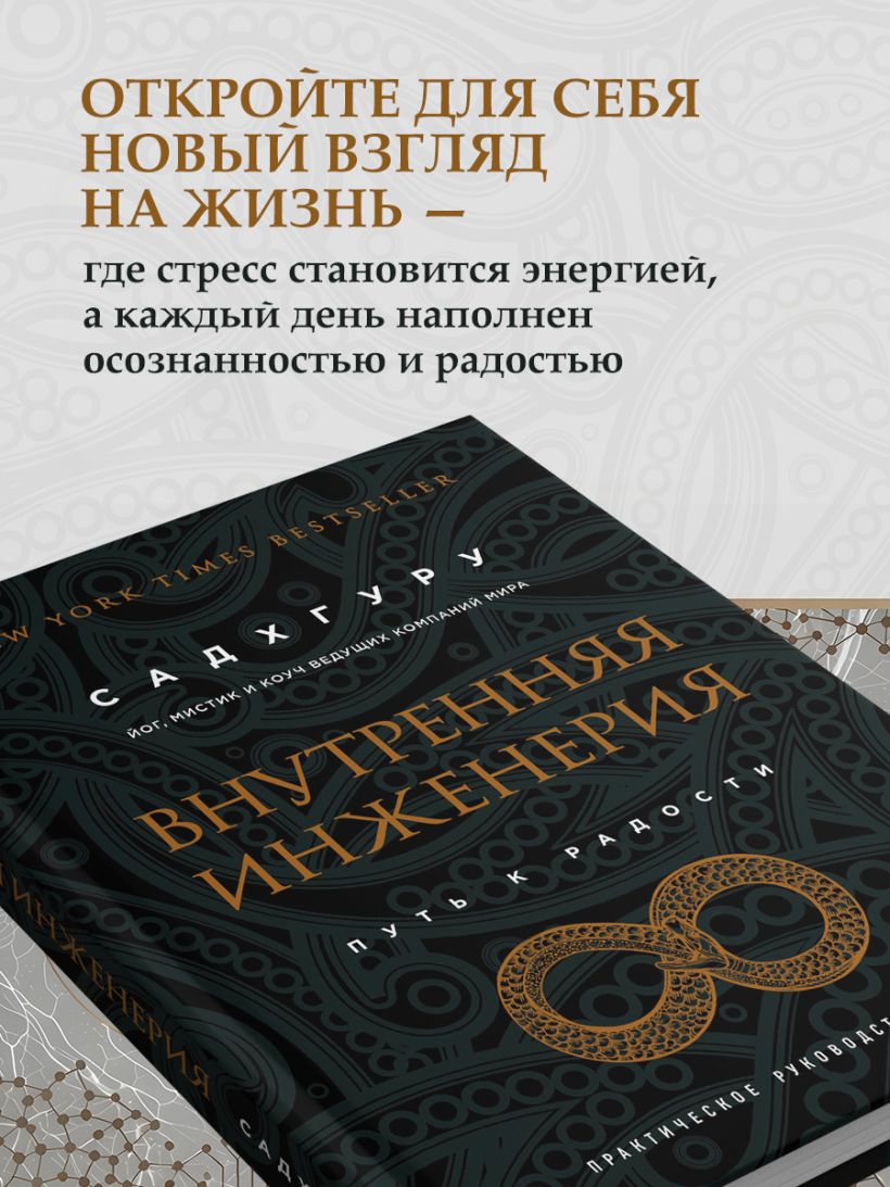 «Гуру должен соответствовать своему времени» - говорит йог, мистик и одновременно коуч ведущих компаний мира Садхгуру. Он снимает с йоги культурные наслоения и преподносит ее как науку, увлекательную современную технологию для достижения радости. Книга основана на личном опыте Садхгуру и на разработанной им на основе йоги системе «Внутренняя инженерия», призванной помочь любому человеку стать «архитектором собственной радости».