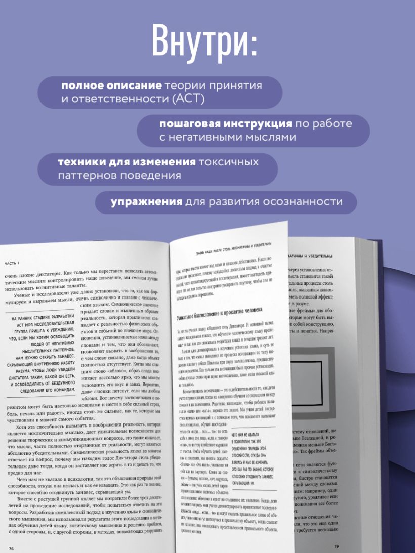 Свою книгу психолог Стивен Хайес посвятил тем, кто хочет изменить жизнь к лучшему. Основатель терапии принятия и ответственности обнаружил, что человека ведет Внутренний Диктатор. Выход из-под влияния тирана освобождает разум, и только так у человека появляется возможность управлять своими эмоциями и чувствами, а вместе с этим в лучшую сторону меняется качество жизни. Книга построена на ярких примерах жизненного и профессионального опыта психолога, а также дает работающие практики для преобразования своей жизни.