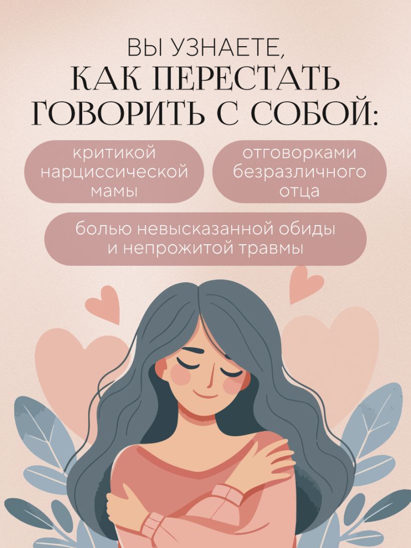 В тяжелые периоды мы с трудом находим теплые слова поддержки для самих себя. Тревога, низкая самооценка и выгорание отнимают силы и заглушают внутренний голос. Загнанные в ловушку негативных мыслей, мы не замечаем, как говорим с собой критикой нарциссической мамы, отговорками безразличного отца, болью невысказанной обиды и непрожитой травмы. Постепенно чужие убеждения становятся частью нашего отношения к себе и отравляют жизнь.