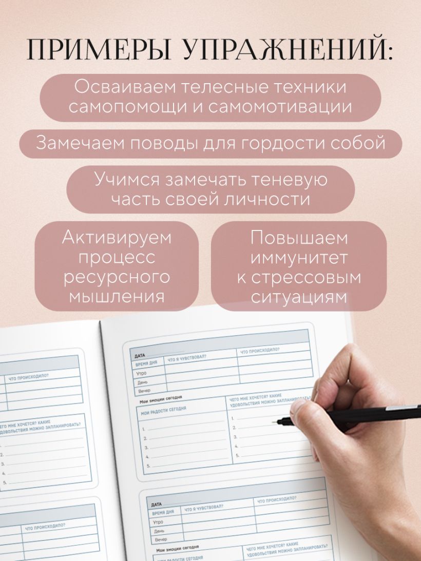Идеальный подарок для читателей книг Стефани Шталь, Ольги Примаченко, Светланы Патрушевой и Юлии Пирумовой. Воркбук удобного, большого формата. Внутри: тест, диагностика, теоретические блоки, упражнения и структурированные дневники настроения. Цветной блок с авторскими рисунками. Написан структурно, отличным языком.