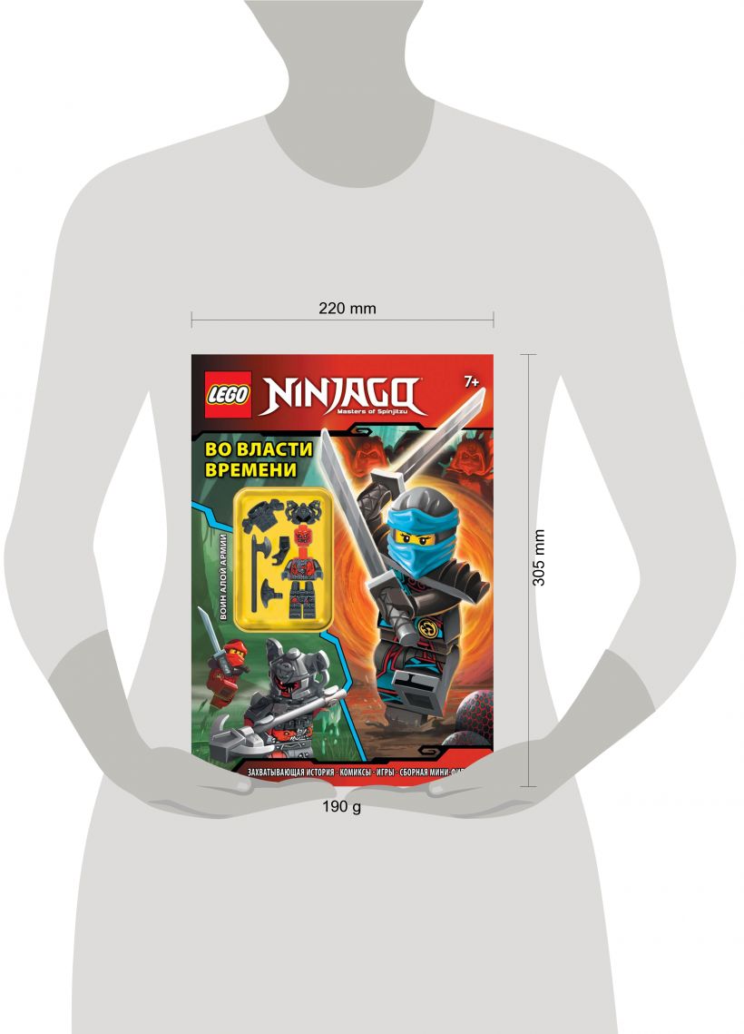 В этом удивительном приключении LEGO NINJAGO наши герои сталкиваются с новым противником! Мастер Ву в опасности, и теперь Кай, Ния, Джей, Коул, Зейн и Ллойд должны сразиться с новым врагом – близнецами Времени! Решай головоломки, читай комиксы и собирай собственную мини-фигурку воина Алой армии!