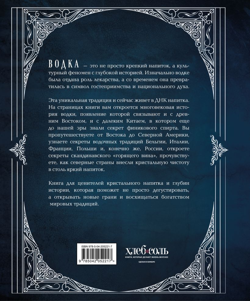 Эта книга — увлекательное путешествие в мир этого феноменального напитка, его истории, географии и культурных особенностей. В ней вы найдете подробный обзор водочной географии от загадочного Востока до Северной Америки. Пройдетесь по истории первых самогонщиков, станете свидетелями первых водочных запретов, окунетесь в философию и этимологию напитка, ощутите ее роль в обществе, политике и медицине. Это не только исторический экскурс, но и путеводитель по миру водочных традиций. От легендарных рецептов до современных коктейлей, вы познакомитесь с многоликой историей водки, ее влиянием на культуру разных народов и ее непреходящей популярностью. Книга также раскрывает роль водки в литературе, искусстве и кинематографе.