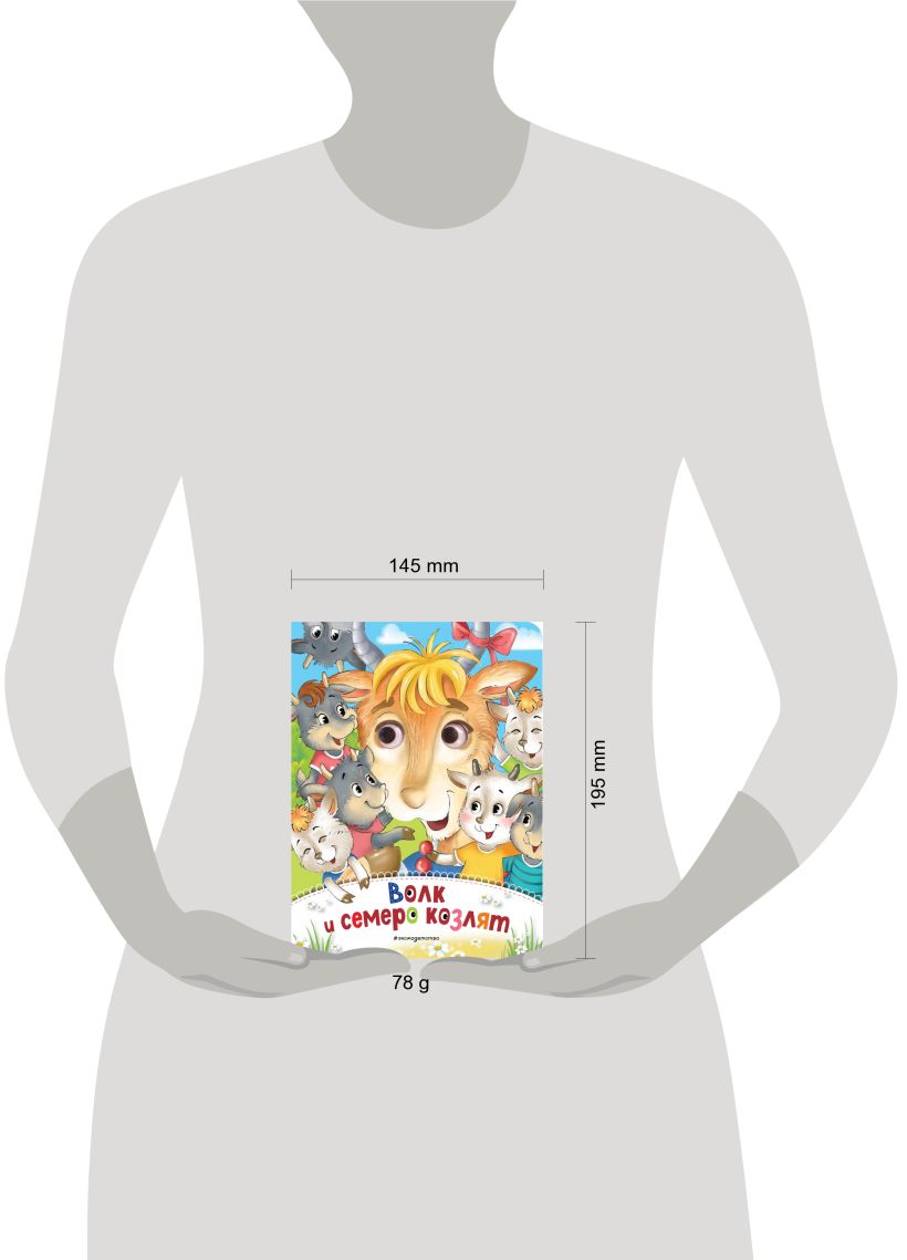 Русская народная сказка «Волк и семеро козлят» представлена в самом удобном для малышей формате — прочные картонные страницы, закруглённые края, красочные иллюстрации. А чтобы ребёнку было ещё интересней знакомиться с историей, на каждом развороте у героя есть подвижные пластиковые глазки.