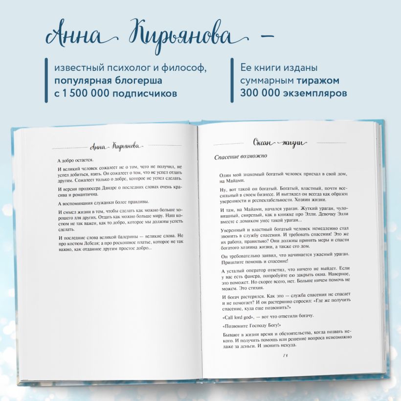 Новая книга известного психолога и философа Анны Кирьяновой — более 1 500 000 подписчиков в социальных сетях. Ее книги изданы суммарным тиражом более 300 000 экземпляров.
