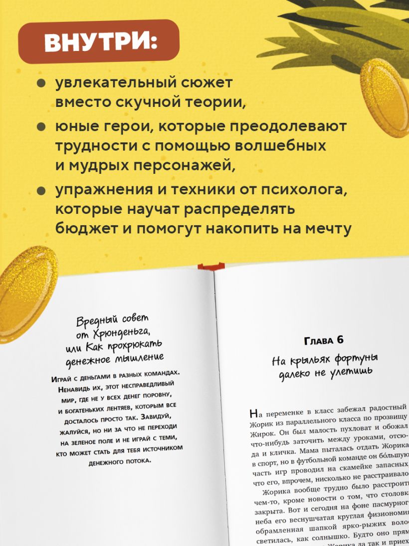 «Может быть так, что родители не дают тебе карманные, а покупают все сами. В таком случае посчитай вместе с ними, сколько они тратят на тебя в месяц, и попроси эту сумму в свое распоряжение. Обязательно покажи им список желаний, расчеты к нему и объясни, что хочешь научиться правильно пользоваться деньгами. Обещай, что не будешь просить ничего купить сверх полученной суммы, и сдержи обещание. В конце концов, просто дай родителям почитать эту книгу. Они согласятся наверняка».