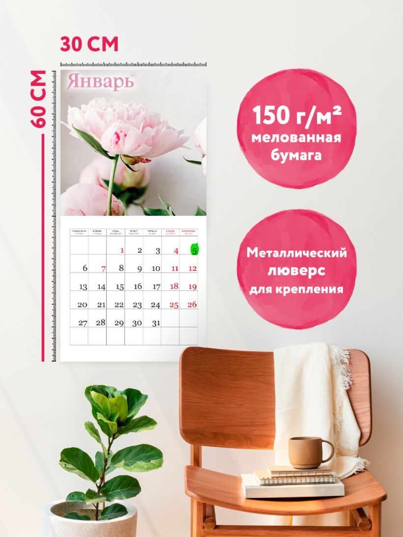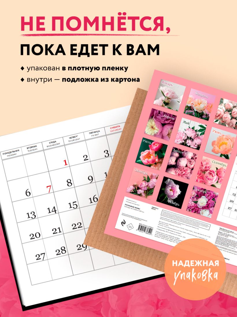 Белые, красные, розовые — шедевры флористики в одном календаре. Каждый месяц представлен оригинальным букетом в соответствии с цветовой гаммой сезона.