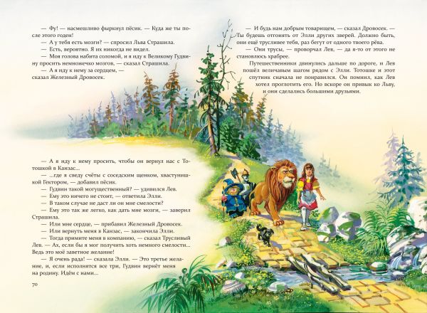 Однажды сильный ураган уносит Дороти и её верного пёсика Тото далеко от родного Канзаса - в удивительную страну Оз. Чтобы вернуться домой, девочка должна отправиться в Изумрудный город и найти великого и грозного Волшебника. В пути Дороти встречает новых друзей: Страшилу, мечтающего обрести мозги, Железного Дровосека, которому не хватает сердца, и Трусливого Льва, стремящегося стать храбрым. Вместе они отправляются в полное приключений путешествие по дороге из жёлтого кирпича. Перевод с английского Сергея Белова. Иллюстрации китайского художника Сюэ Цзинь.