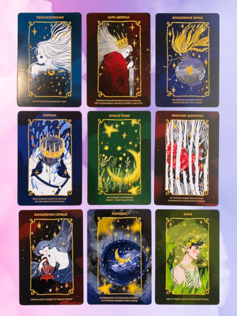 Колода метафорических ассоциативных карт Ольги Глушковой (Molganzoid) создана для тех, кто любит смелые яркие образы и верит в сказки и чудеса. Яркие метафоричные карты- открытки с посланиями лесных духов и сказочных героев помогут найти ответы на самые сокровенные вопросы и откроют двери в мир волшебства и мечты.