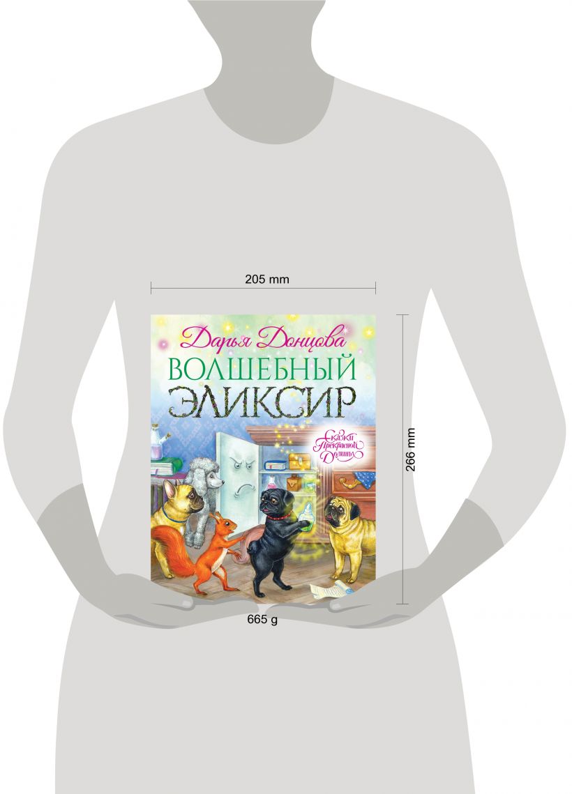 Об авторе Дарья Донцова - известная российская писательница, главная оптимистка страны, которая пробует себя в роли сказочницы. Любовь читателей к ее персоне стремительно растет, интерес к ее творчеству не угасает, а работоспособность и многогранность Дарьи Аркадьевны восхищают. Жанр Сказки для детей и взрослых. О книге Книга «Волшебный эликсир» - это новые приключения жителей «Прекрасной Долины», которые волею судьбы оказались в мире людей и стали хранителями нескольких семей. Мопсиха Зефирка должна была охранять своего подопечного, врача Виктора. Вот только случайно попала в дом Миши и Ксюши, которые живут в невероятной бедности и которых органы опеки грозятся забрать в приют. И теперь собачке и ее друзьям предстоят невероятные приключения, чтобы защитить детей и помочь их больной маме. Особенности Искренняя сказочная повесть Дарьи Донцовой «Волшебный эликсир» - это увлекательная и динамичная история с множеством сменяющих друг друга событий, интересных героев и неожиданных сюжетных поворотов, которую можно читать всей семьей и размышлять вместе с детьми о таких понятиях, как дружба, любовь, верность, предательство, взаимопомощь, справедливость и смелость.