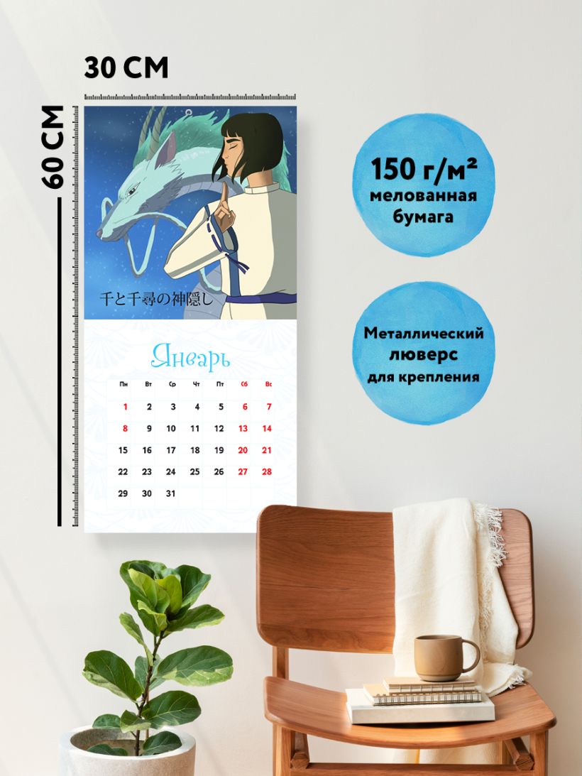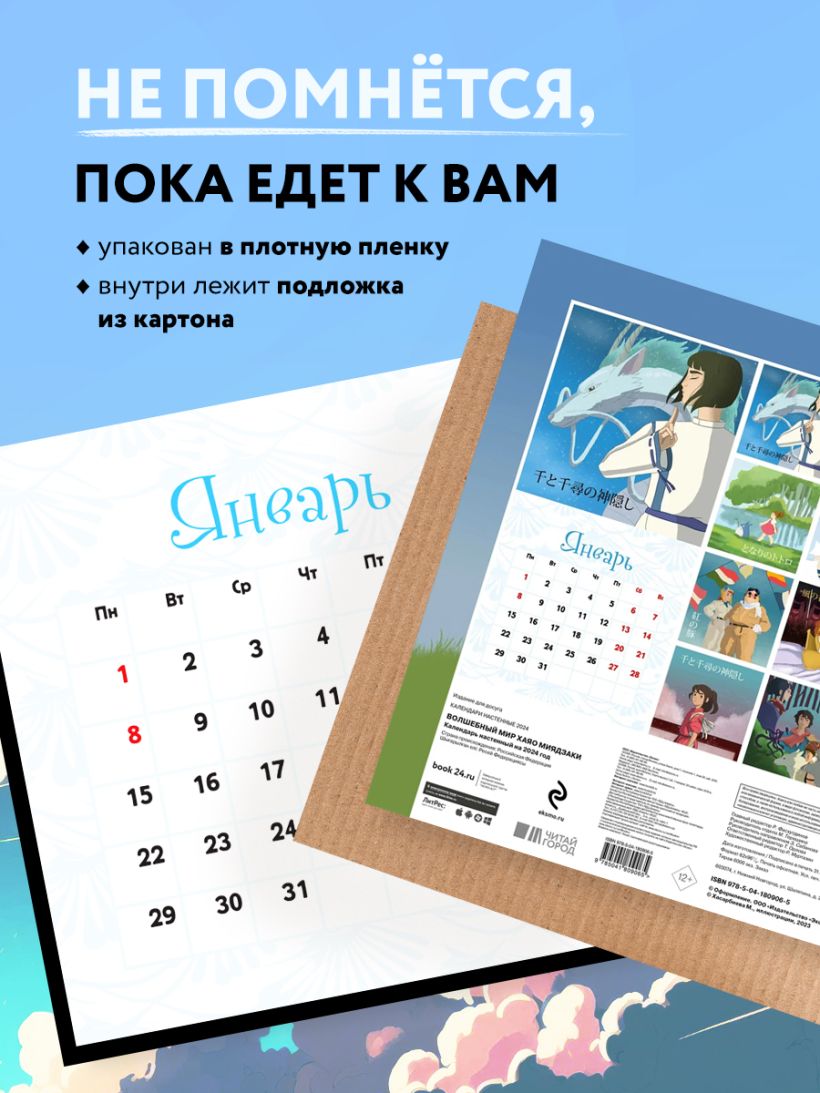 Всем сердцем любите работы мастера? Тогда этот календарь станет идеальным украшением вашего дома! Авторские иллюстрации от художницы Марии Хасарбиевой наполняет его эстетикой волшебного мира Хаяо Миядзаки, мира детства, искренности и преданности своему идеалу. Внутри вас ждут милые истории и красочные иллюстрации, а также сетка с основными праздниками и местом для записи важных событий. Удобный формат 300х300 мм позволит повесить его абсолютно везде. Подарите себе кусочек хорошего настроения на весь год!