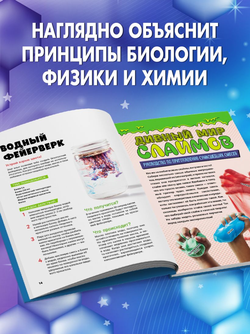 Книга, которую с радостью прочитали бы Фиксики, чтобы вдохновиться на увлекательные опыты! Читателю понадобится всего одна стеклянная банка и несколько простых бытовых предметов, чтобы с помощью этого сборника провести 40 захватывающих экспериментов прямо у себя дома. В дополнение к опытам книга наглядно продемонстрирует и поможет с легкостью запомнить принципы и законы физики, биологии, химии и других наук.