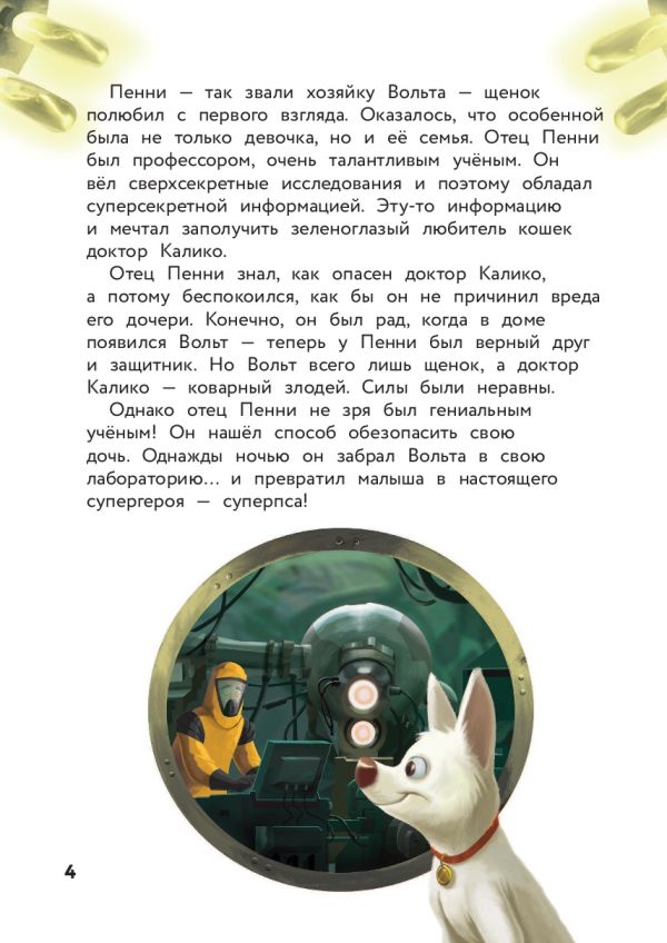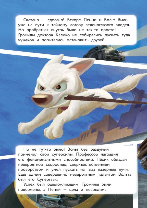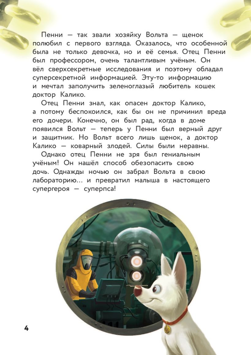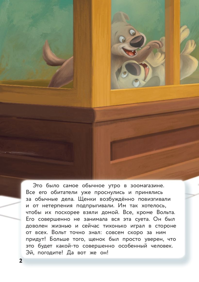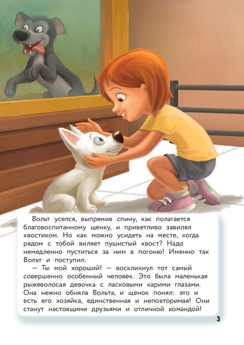 Читайте увлекательную добрую историю о храбром Вольте, его любимой хозяйке Пенни и верных друзьях — хомяке Рино и кошке Варежке.
