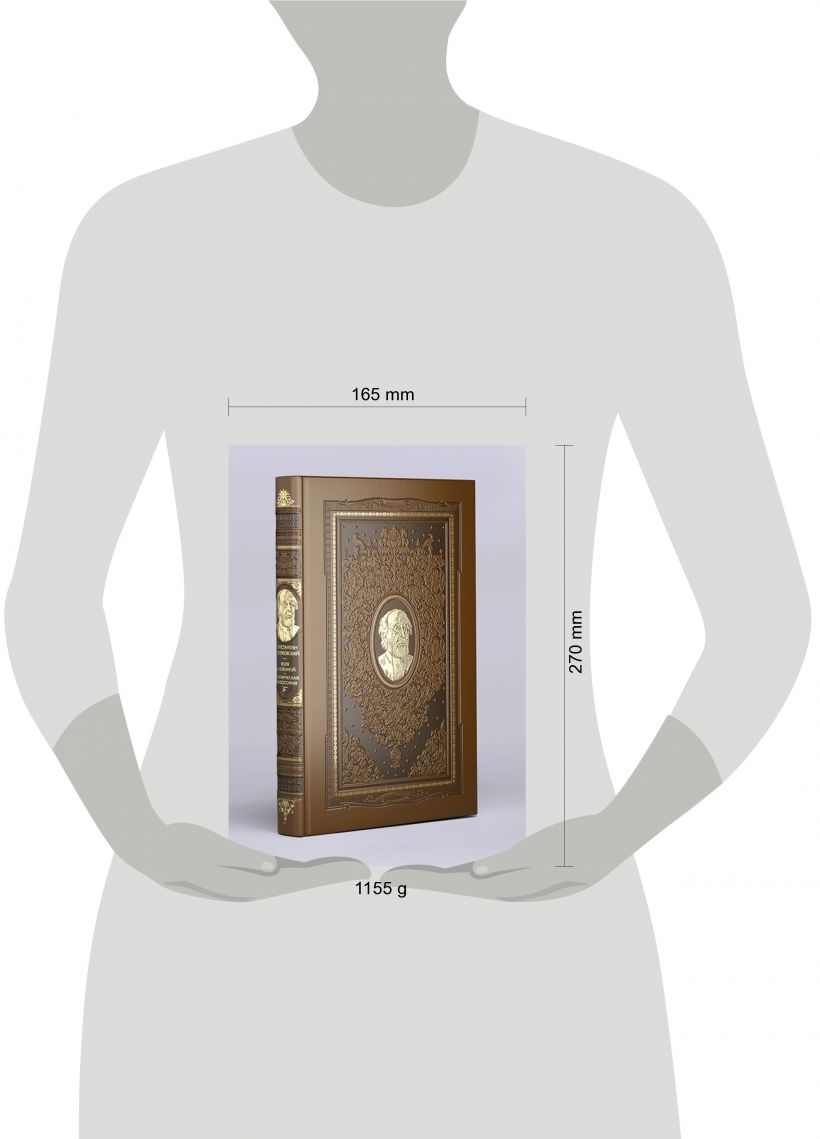 Коллекционное издание в серии «Великие личности», включающей в себя 21 том знаменитых сочинений крупнейших философов, ученых, писателей и военачальников прошлых веков и нового времени в популярном изложении. Издание в переплёте ручной работы отпечатано на бумаге премиум-класса цвета чайной розы и сшито вручную. Заявленный тираж 2020 года - 15 нумерованных экземпляров. В каждом экземпляре - избранные цитаты и гравированный портрет автора, отпечатанные на дизайнерской бумаге, изготовленной на четверть из натуральной кожи. Переплеты созданы по традиционной для 19 века технологии из гладкой натуральной кожи и украшены тремя видами рельефного тиснения - золотым. рельефным и красочным. Форзацы книги из дизайнерской тонированной бумаги и тиснёные золотом орнаментальные дублюры. Каптал и ляссе из шелка и трехсторонний торшонированный обрез.