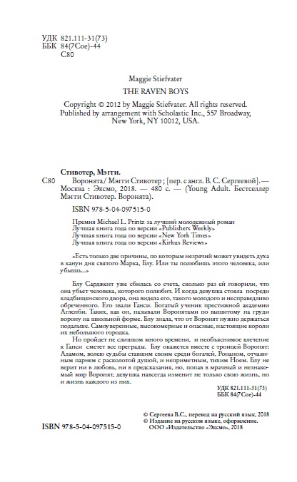 1. Культовый роман, во многом определивший направление развития молодежной литературы сегодня и ставший бестселлером «New York Times», «Amazon», а также книгой года по версии таких авторитетных изданий, как: «New York Times», «Publishers Weekly», «Kirkus Reviews».2. Премия Michael L. Printz за лучший молодежный роман. Мэгги Стивотер – одна из самых талантливых современных писательниц.