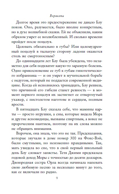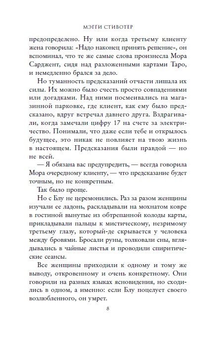 5. Роман смело можно разбирать на цитаты, благодаря неповторимому языку автора! Любишь получать удовольствие от утонченной современной литературы, тогда эта книга для тебя! Фраза, открывающая роман, стала широко известной и по-своему знаковой: «Блу Сарджент уже сбилась со счета, сколько раз ей говорили, что она убьет человека, которого полюбит».