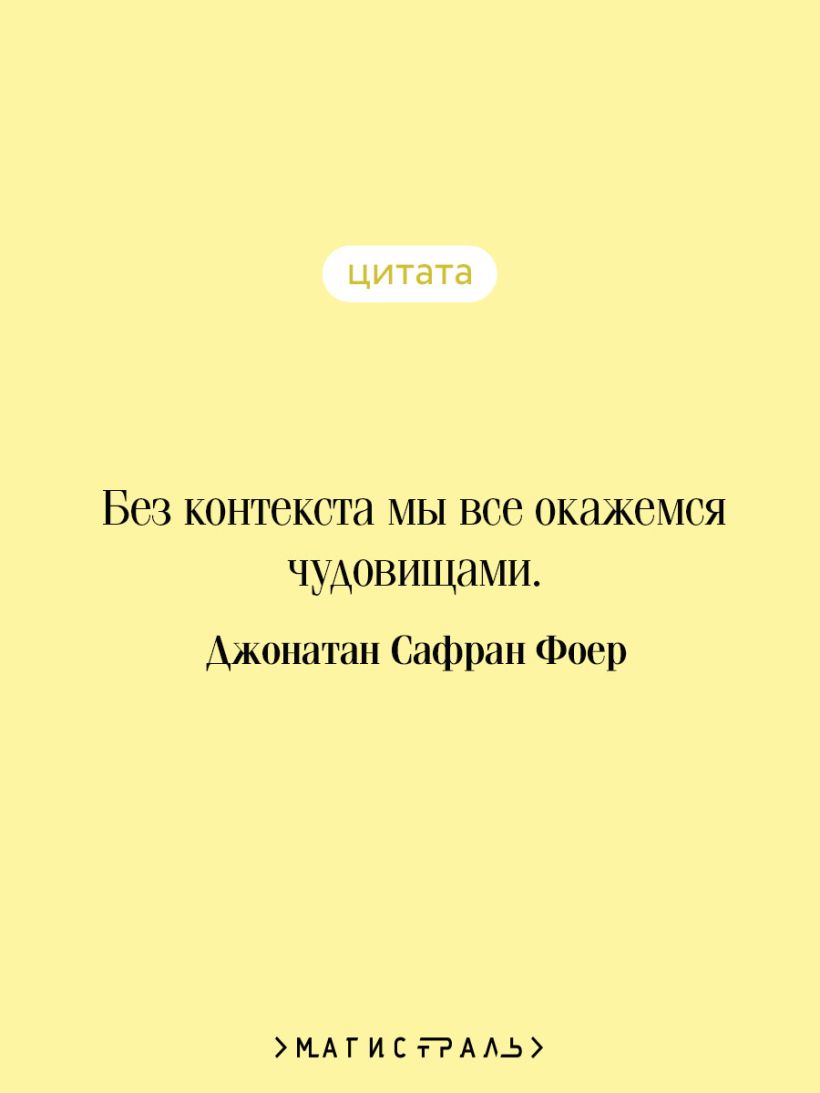 Джонатан Сафран Фоер — автор романов «Полная иллюминация», «Жутко громко и запредельно близко», «Вот я» и нехудожественных произведений «Мясо. Eating Animals» и «Погода — это мы».