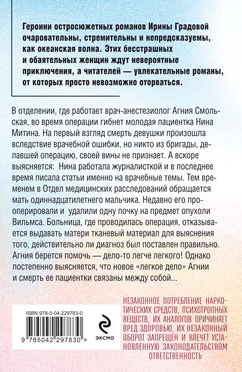 В отделении, где работает врач-анестезиолог Агния Смольская, во время операции гибнет молодая пациентка Нина Митина. На первый взгляд, смерть девушки произошла вследствие врачебной ошибки, но никто из бригады, делавшей операцию, своей вины не признает. А вскоре выясняется: Нина работала журналисткой и в последнее время писала статьи именно на врачебные темы. Тем временем в Отдел Медицинских Расследований обращается мать одиннадцатилетнего мальчика. Недавно его прооперировали и удалили одну почку по причине опухоли Вильмса. Больница, где проводилась операция, отказывается выдавать матери тканевый материал для выяснения того, действительно ли диагноз был поставлен правильно. Агния берется помочь — дело-то легче легкого! Однако постепенно выясняется, что новое «легкое дело» Агнии и смерть ее пациентки связаны между собой...