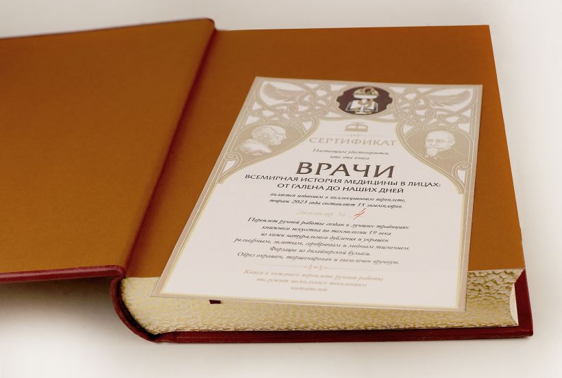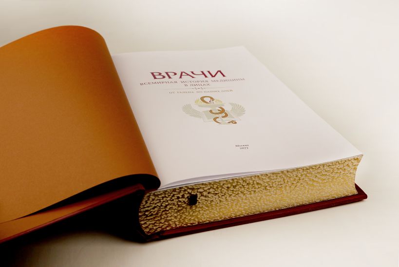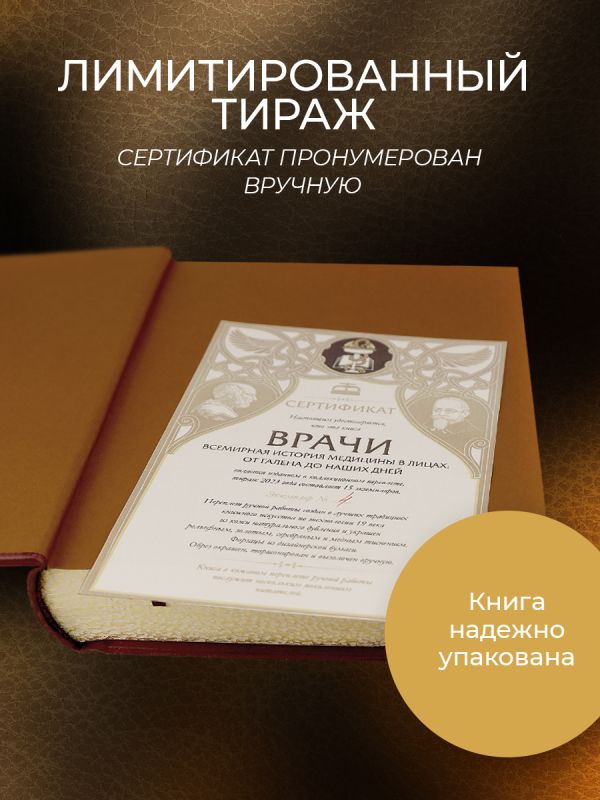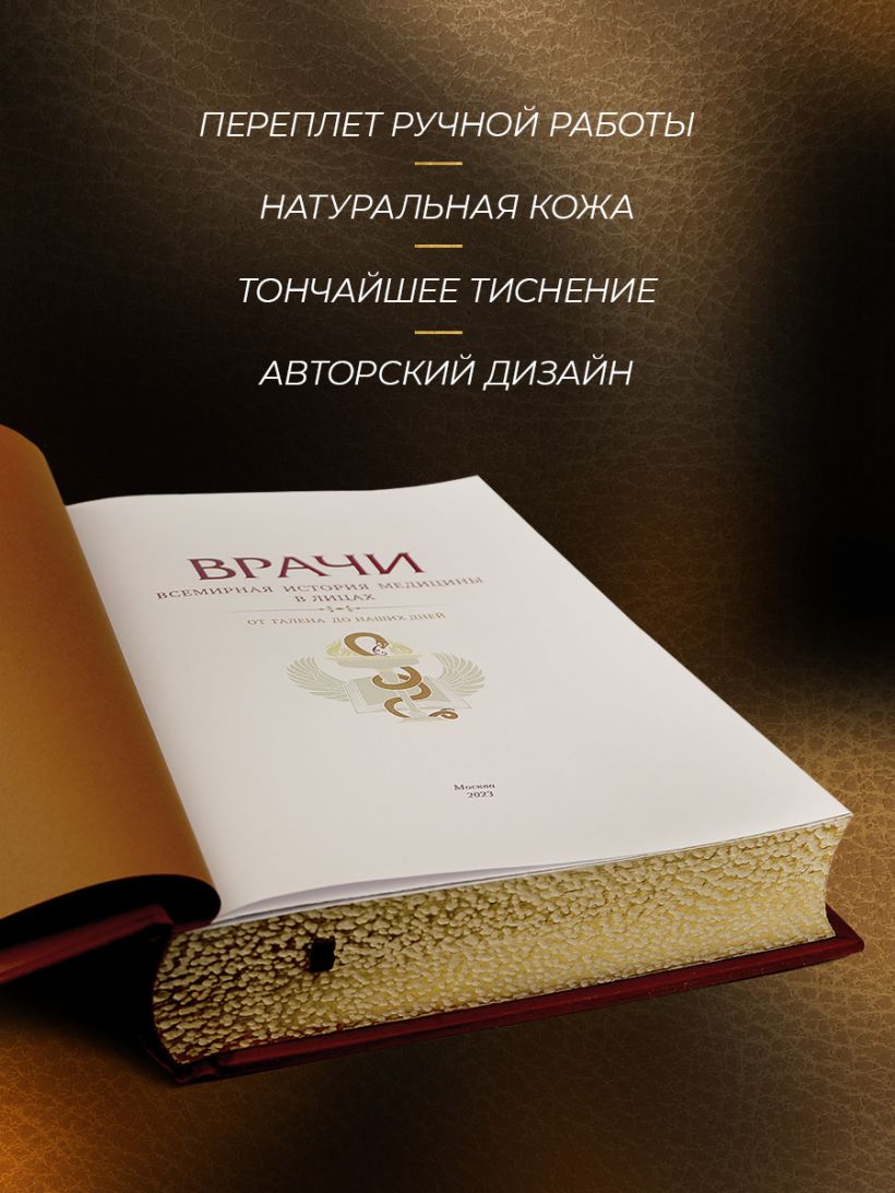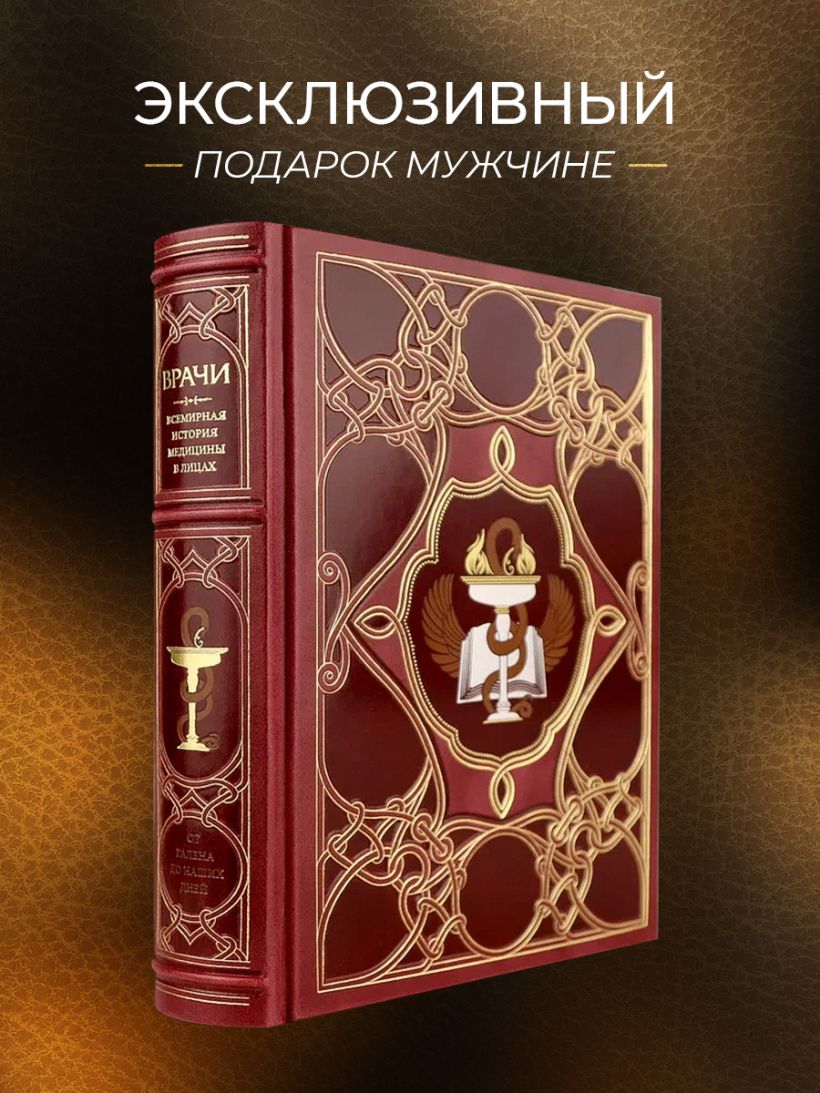 Врачи. Всемирная история медицины в лицах. Книга в коллекционном кожаном переплете ручной работы с окрашенным и золоченым обрезом и многоцветным тиснением