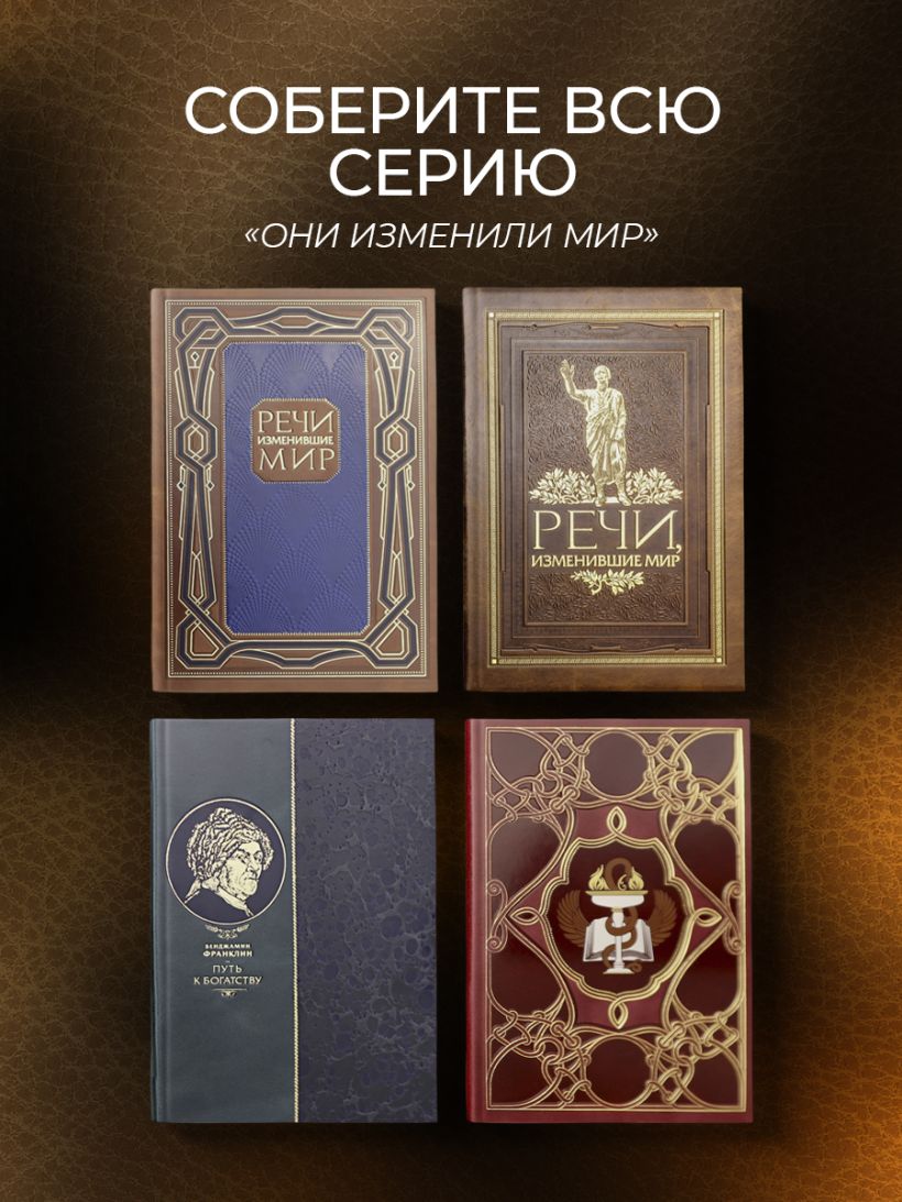 Электронная книга Аудиокнига Речи, изменившие мир. Книга в коллекционном инкрустированном кожаном переплете ручной работы с окрашенным, торшонированным и золочёным обрезом