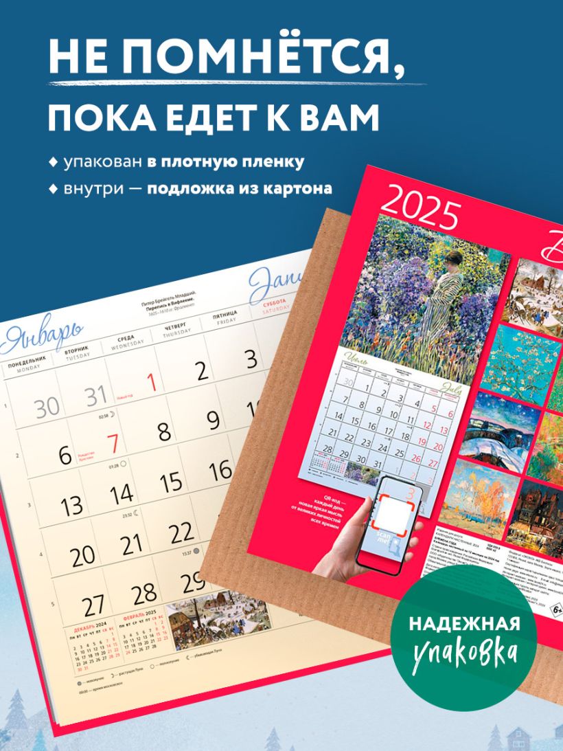 В этом настенном перекидном календаре на 2025 год представлены знаменитые картины великих художников. Повесьте этот календарь в своем доме или на рабочем месте, и он достойно украсит любой интерьер. А календарный блок напомнит о важных событиях года. В центре календаря помещен большой арт-постер, который может стать отдельным декоративным украшением интерьера.