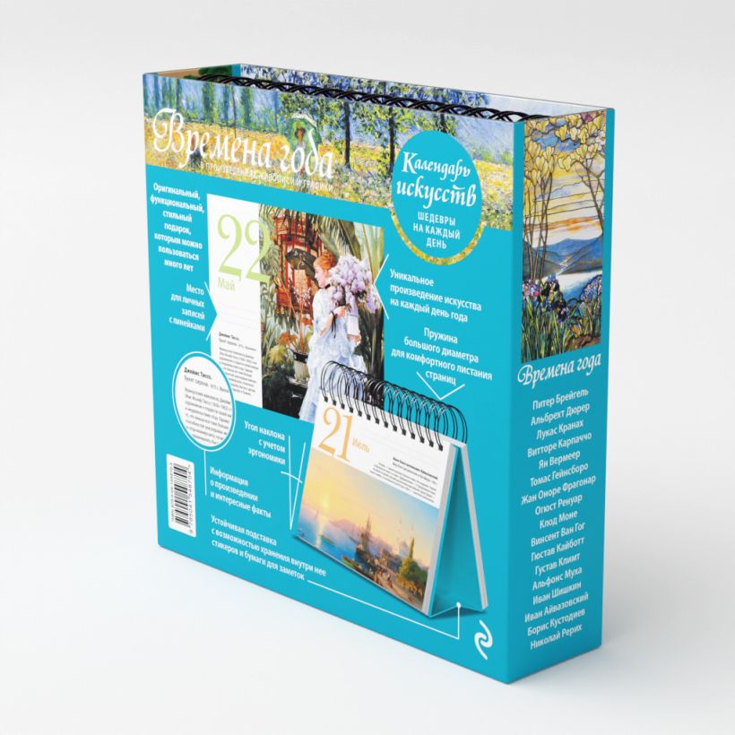 Вечный календарь «Времена года» из серии «Шедевры на каждый день» — это креативная инновация во Вселенной искусства. Календарь объединяет в себе достоинства художественного альбома, картинной галереи и путеводителя по изобразительному искусству.