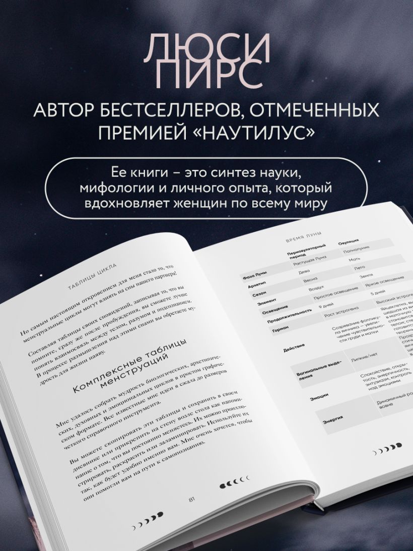 Книга «Время Луны. Циклы и женское тело» затрагивает весьма деликатные темы о женском теле, которые долгое время было не принято обсуждать вслух. Но Люси Пирс искренне верит, что женский организм прекрасен и что все процессы в нем не являются чем-то постыдным и запретным.
