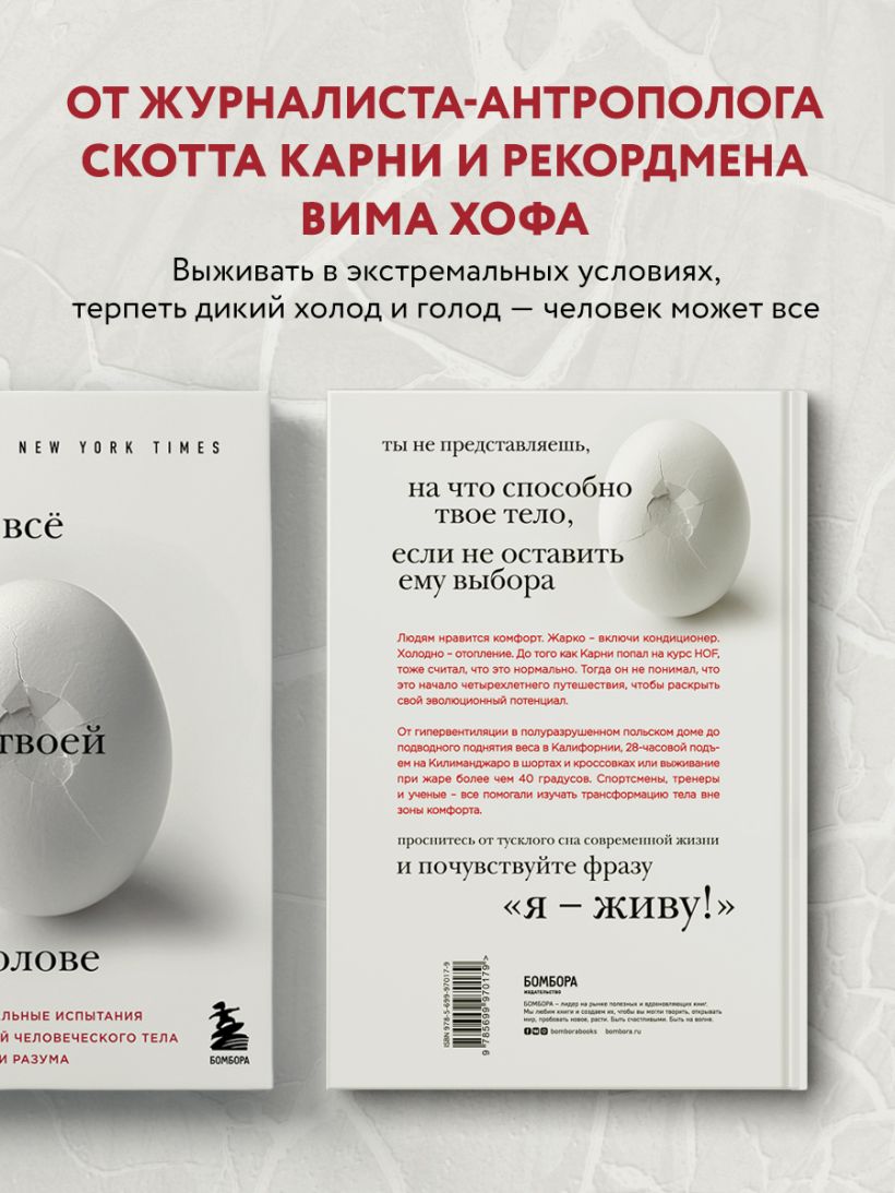 Всё, что нас не убивает, делает нас сильнее. Правда? Не совсем. Что нас не убивает, МОЖЕТ сделать нас сильнее, выносливее, увеличить продолжительность жизни и выявить истинные возможности нашего мозга. Как? Журналист и антрополог Скотт Карни после долгих лет, проведенных в офисном кресле, задался этим вопросом. Как человек может обмануть эволюцию и открыть в себе навыки, которыми обладали наши предки? Выживать в диком холоде, не питаться несколько дней и свободно выходить из зоны комфорта? В ходе работы Карни помогал рекордсмен Вим Хоф, способный контролировать температуру собственного тела, и другие люди-феномены, вылечившиеся от аутоиммунных заболеваний, похудевшие при рекордном весе и избавившиеся от диабета. Перед вами амбициозное журналистское исследование, посвященное определению истинной связи между разумом и телом.