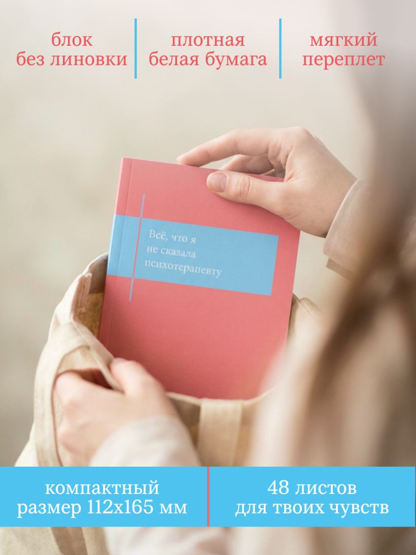 Этот блокнот предназначен для слов, которые ты боишься сказать вслух; для эмоций, которые тебе стыдно показывать даже самым близким людям; для чувств, которые не с кем разделить. Он примет тебя такой, какая ты есть, — никогда не предаст и не осудит. Этот блокнот — место для твоего диалога со своим внутренним «Я». Так наберись же смелости и начни его!