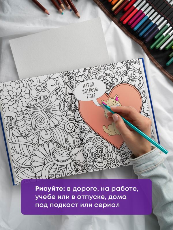 Наташа, вставай! Пора картинки раскрашивать! Раскраска-антистресс