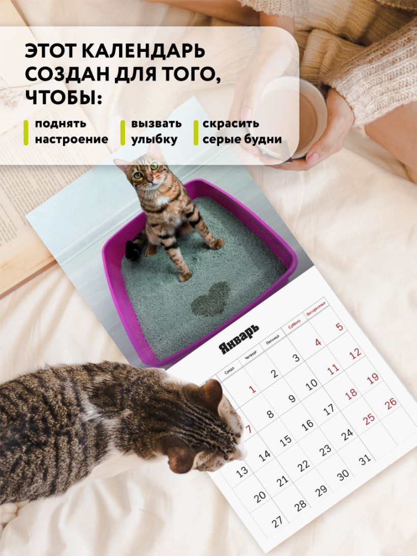 В каждом месяце раскрывается тайна милых котиков, отвечающих на зов природы. А кому не нравится хорошее дело? Ведь все кошки делают ЭТО!